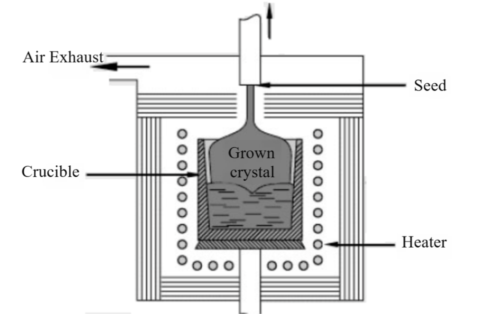 The advantages of the Czochralski method include: (1) fast growth rate, enabling the production of high-quality single crystals in a short time; (2) crystals grow at the melt surface without contact with the crucible wall, effectively reducing internal stress and improving crystal quality. However, a major drawback of this method is the difficulty in growing large-diameter crystals, making it less suitable for producing large-sized crystals.